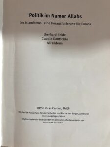 Ozan Ceyhun hat auch ein Buch namens „Der Islamismus, eine Herausforderung für Europa: Politik im Namen Allahs“ als sehr stolzes Mitglied des Europäischen Parlaments und mit dem Logo der Fraktion der Sozial Demokraten in Europa veröffentlicht. Nicht er hat das Buch geschrieben, sondern Eberhard Seidl, Claudia Dantschke und Ali Yildirim. Das Buch ist noch im Internet auffindbar. Bei dem Buch handelt es sich um die 2. Auflage vom September 2001. Was hat sich innerhalb der 20 Jahre geändert? Was für eine Scheinheiligkeit passiert in Europas Städten, aufgrund der Unwissenheit europäischer Politiker, Kirchen, Medien und Menschen. Wir stellen Ihnen den Bericht, den wir als Bild unter die Übersetzung platzieren, zur Verfügung.