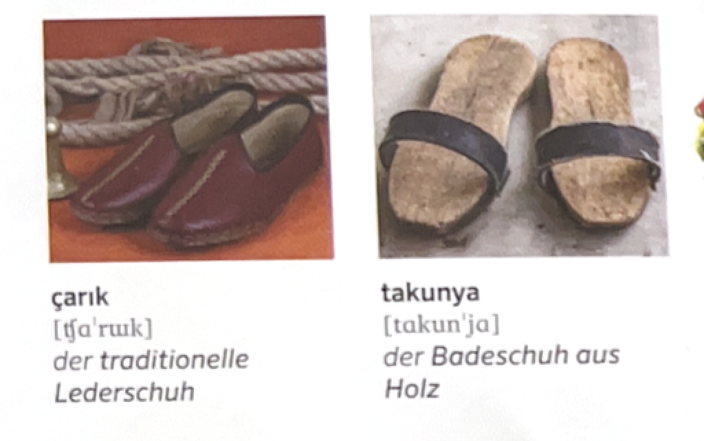 Der Versuch, die türkische Kultur auf der ersten Seite direkt über religiöse Elemente (Prediger, Imam, Gebet, Moschee, Gebetsteppich, Takunya (Holzschuhe) usw.) bzw. Bauchtanz zu erklären, zeugt von einer äußerst falschen und kolonialistischen Sichtweise. Außerdem ist die Aufnahme des Begriffs „başlık parası – Brautgeld“ für mich als in der Türkei Geborenen und Aufgewachsenen völlig neu.