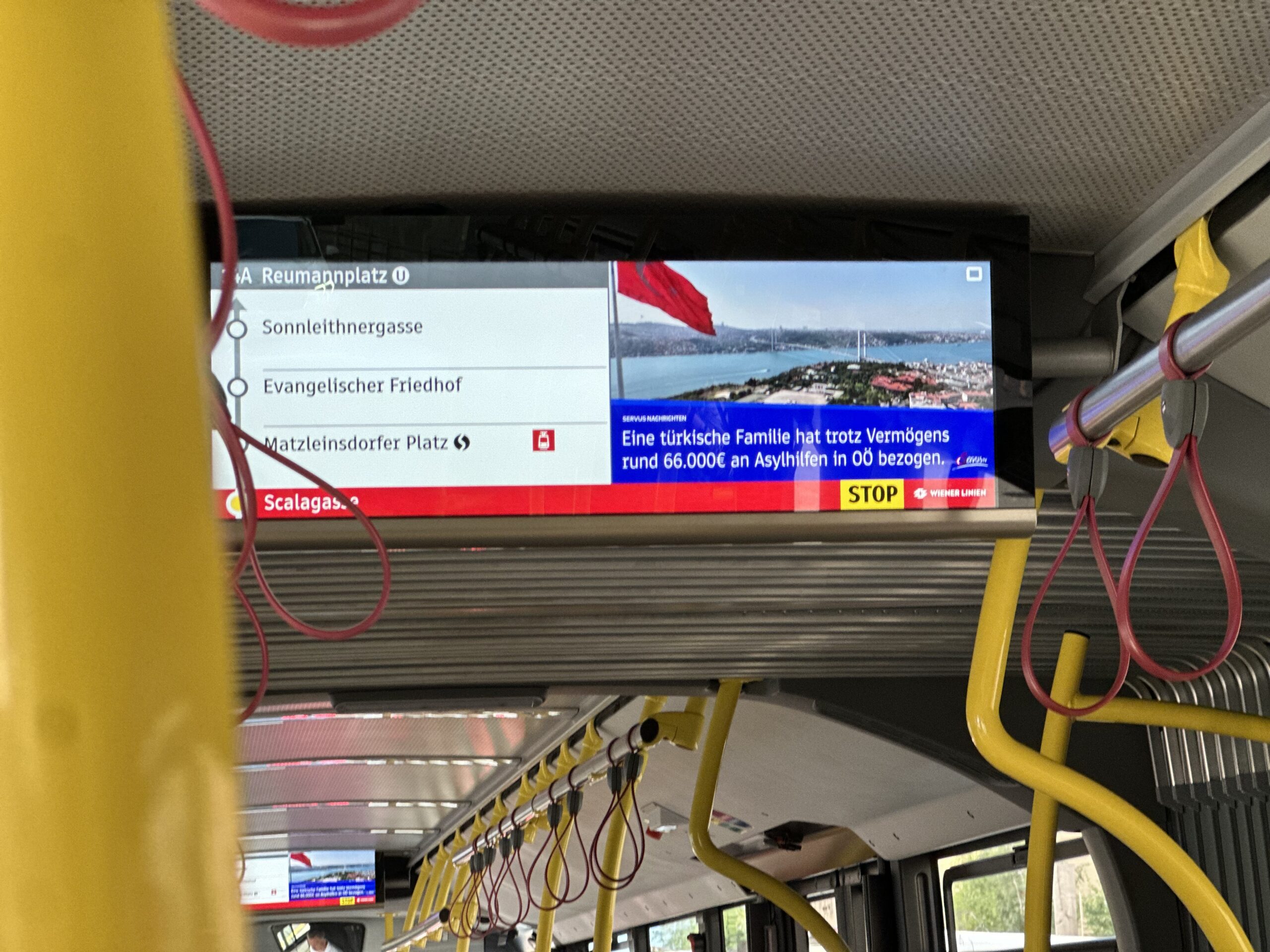 Bugün! Bakın, Viyana’daki otobüslerdeki haberlere.